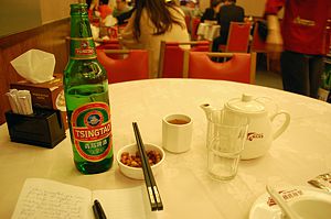 bottle of Tsing Tao. The seasonal vegetables were crisp, with lots of garlic.