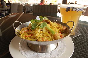 I found a cafe offering Singapore noodles (huge) and a large glass of Hoegaarden