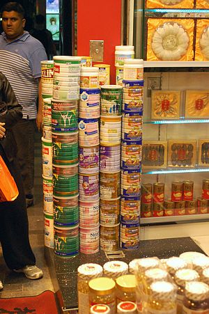 One shop had a huge stack of milk powder (infant formula) on display. This