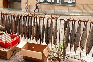The row of fish drying on the side of the road was magnificent.
