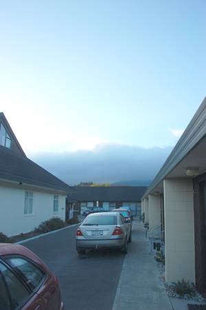 A bad start to the morning. A quick look outside the motel revealed heavy