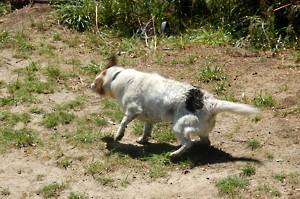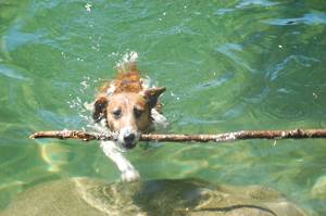 having a wonderful time chasing a stick, tugging on the stick when it was