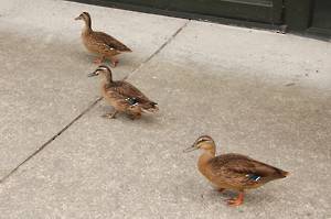 some ducks exploring the shopping precinct. I suppose there is a pond here