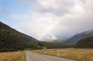 a rainbow as I set off down the Makarora Valley.