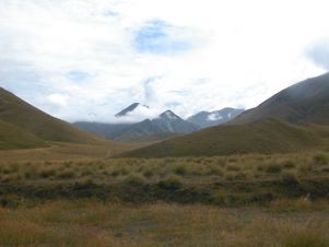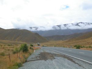 The road eventually leaves the river valley and crawls upwards towards the Lindis Pass. It is a very barren area, although it was much greener than usual. The wet spring and early summer had not spared even the driest of areas.