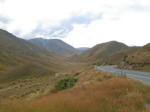 The pass is one of the highest on a main road at 965 metres. A plaque records the centenary of the release of the first red deer in Otago in 1871. The Department of Conservation would consider this a subject for mourning rather than celebration!Once over the pass, the road falls rapidly into the Ahuriri Valley. |