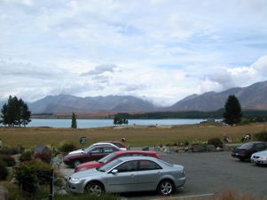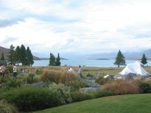 I completed the final half hour to Tekapo, checked into the motel, which was very smart and with beautiful lake front views, and had a much needed rest. Not feeling able to do much walking, I collected my emails, did some work and started to write down the story of my walk. This took until dinner time, when I staggered to the nearest restaurant, had a good meal and then took a coffee to an outside table, overlooking the lake and the miniature golf course.