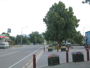 At Geraldine it was hot and full of coaches. They use it as a stopping off point between Christchurch and the mountains, which does wonders for the local economy but makes the place very busy. I bought some sticky plasters for my increasingly sore heel and a posh bacon sandwich at the pub. This was consumed under an umbrella in the garden, almost English style.