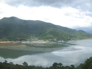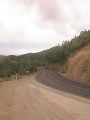 The road rises over the Whangamoa Saddle and drops down to the coast at Nelson. It became increasingly gloomy and spots of rain began to appear on the windscreen.