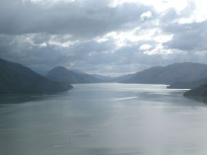 The Cullen Point walk, which I had postponed yesterday, was hot, steep and sticky. It went rapidly downhill, offering good views down the Sounds and then back up the hill again through an area of bush. It was very humid and the cicadas were very noisy - if they had been industrial I would have been required to wear ear protectors. I was able to watch the mail boat chugging up the Sounds, with its cargo of post, people and anything else requiring delivery to the isolated houses. It would be an idyllic way to spend a day - if only the weather could be guaranteed. |