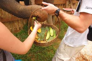 Once back at the start, we tipped the mahouts with money and bought some baskets of fruit with which to tip the elephants. They seized this from our hands with considerable enthusiasm - except for the one which always spat out the yellow fleshed, green skinned fruit (or vegetable). It might have been pumpkin, in which case, I have to agree with the elephants taste.