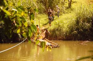 successfully negotiated the bamboo raft bridge to the other side.