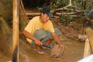 watched as a coconut was gradually dismembered with a machete.