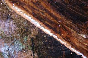 bark - requiring all the strength that she had. The sap then collects in the cut - a process which started to