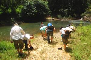with a bed of round, slippery stones. We all made it across safely but