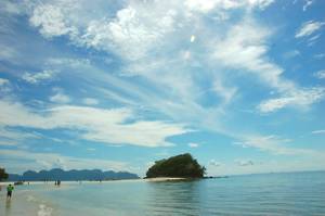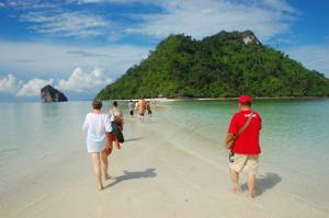 At Poda Island we marched up the beach onto a much larger island. There was a central area of café, toilets etc and even a small temple area. There lots of trees and lots of slightly scrubby sand.