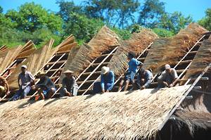 One of these was being re-roofed as we passed and, by the time we returned a couple of hours later, it had been completed. For much of the journey we were surrounded by steep cliffs with thick vegetation but there were also sandbanks and a few more open areas. The almost complete absence of wildlife can probably be attributed to the horrific noise of the engine.