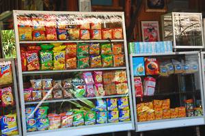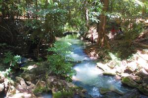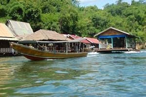 We climbed another short path, viewed the supposed swimming hole and all changed our minds very rapidly. We had all had visions of crystal clear pools at the foot of a waterfall, not a muddy creek in the middle of a forest. The guide was a bit confused by this so took us to look at the local market - largely closed because it was a Sunday - and the National Park Information Centre, which featured some of the stranger local flora and fauna. Honour satisfied, he lead us back down the hill to the floating café, where he distributed our packed lunches. These were a disappointment. 2 boiled eggs, 2 green skinned mandarins (lovely), a piece of fried chicken, a ham sandwich and a piece of cake. I ignored the last three for various reasons.