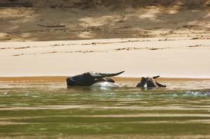 The journey home, downstream, was quite a lot quicker that the outward one. We saw a few birds, an elephant in the extreme distance and, finally, a very peculiar shape, a herd of buffalo almost completely submerged in the river trying to keep cool.