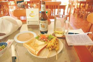 a beer and a satay for lunch.